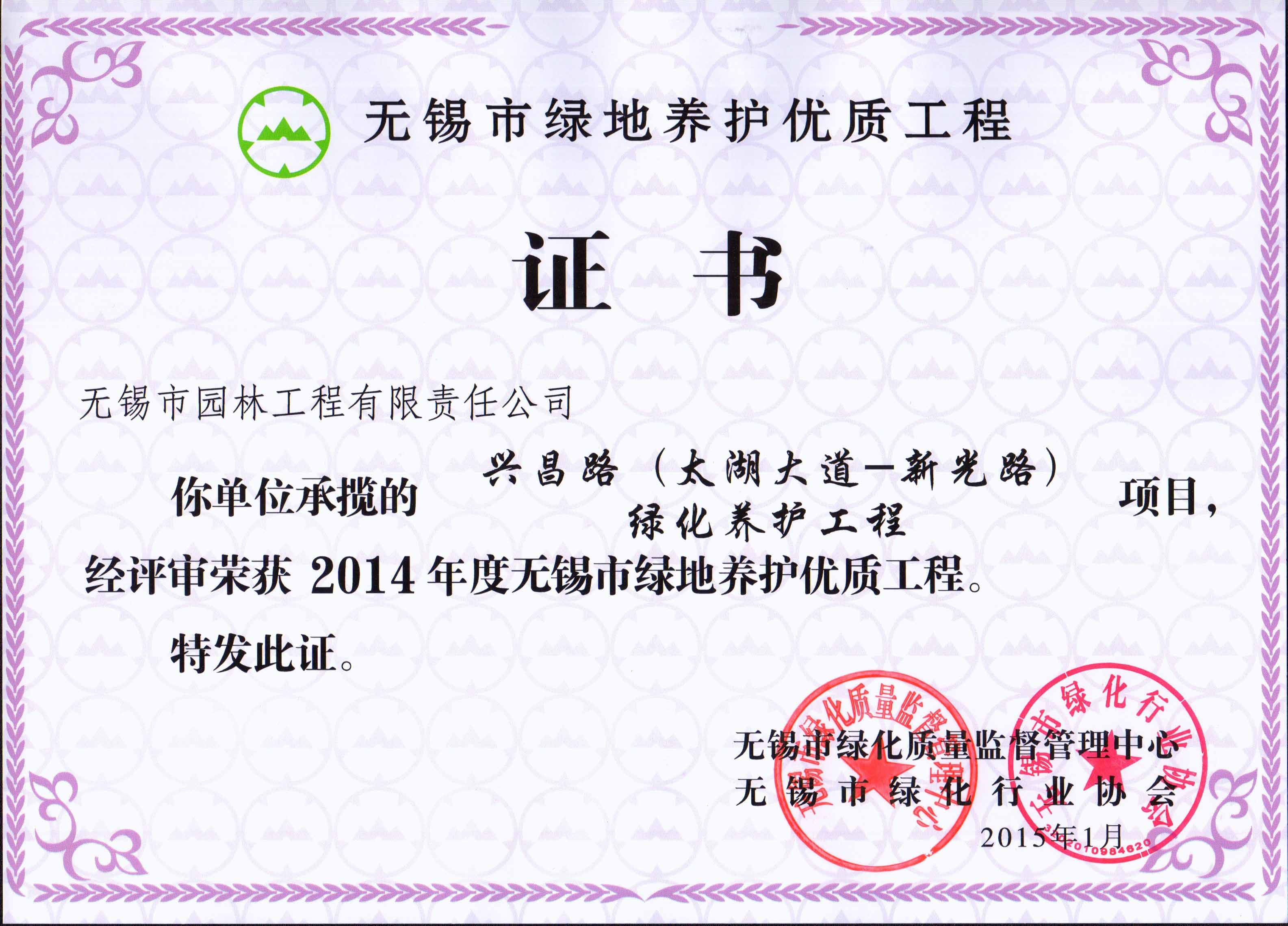 2015年度無錫市園林綠化明星企業(yè)