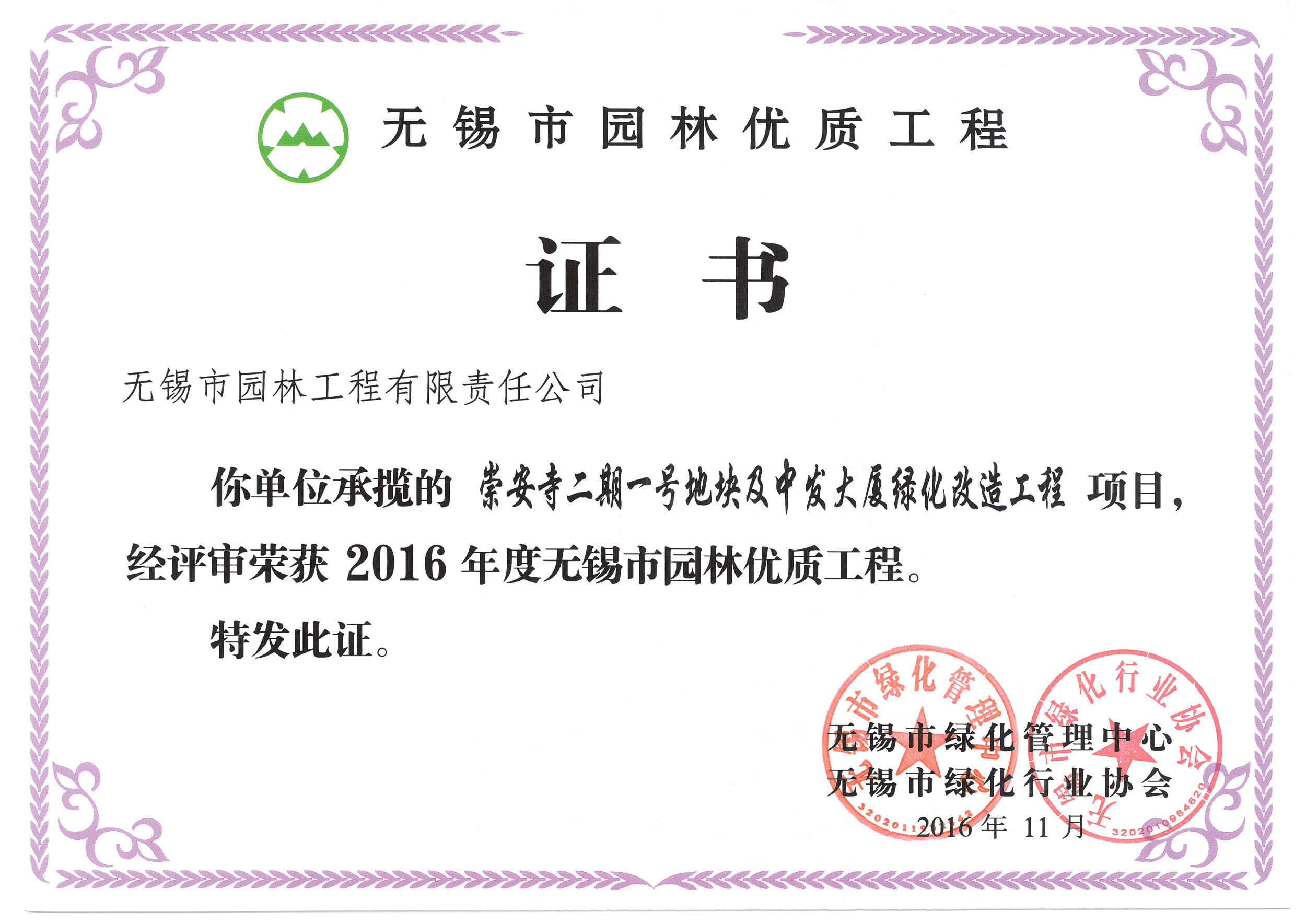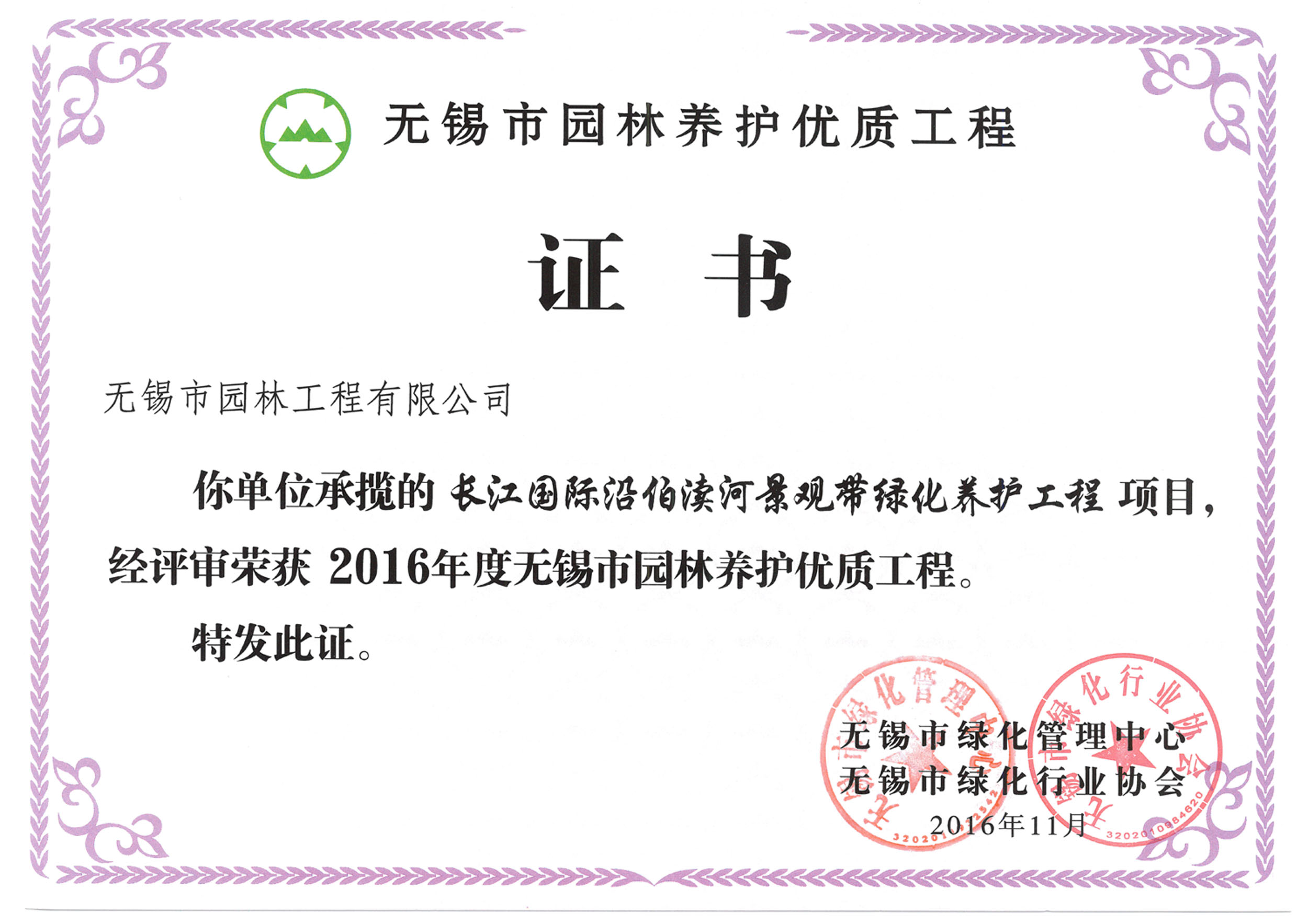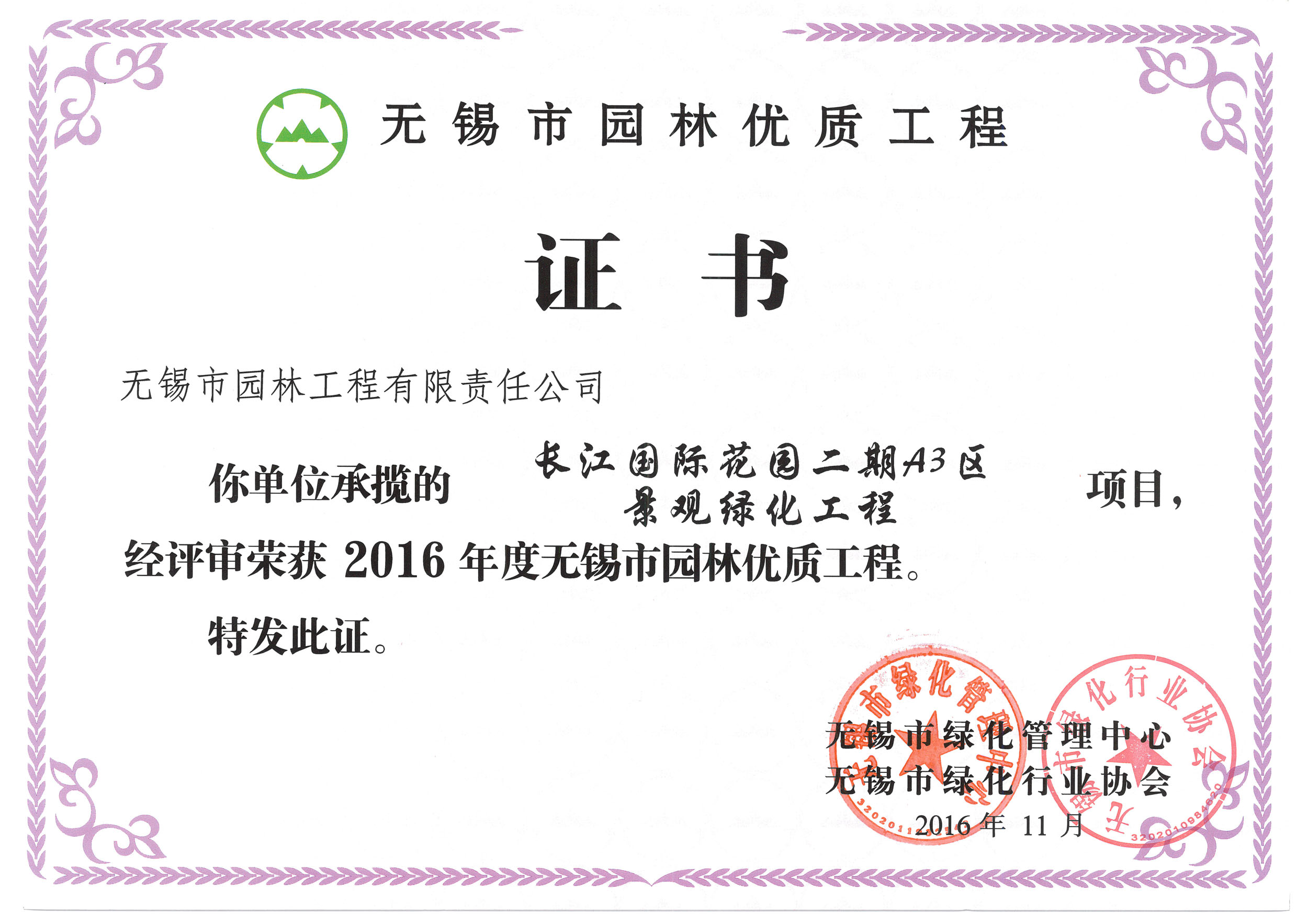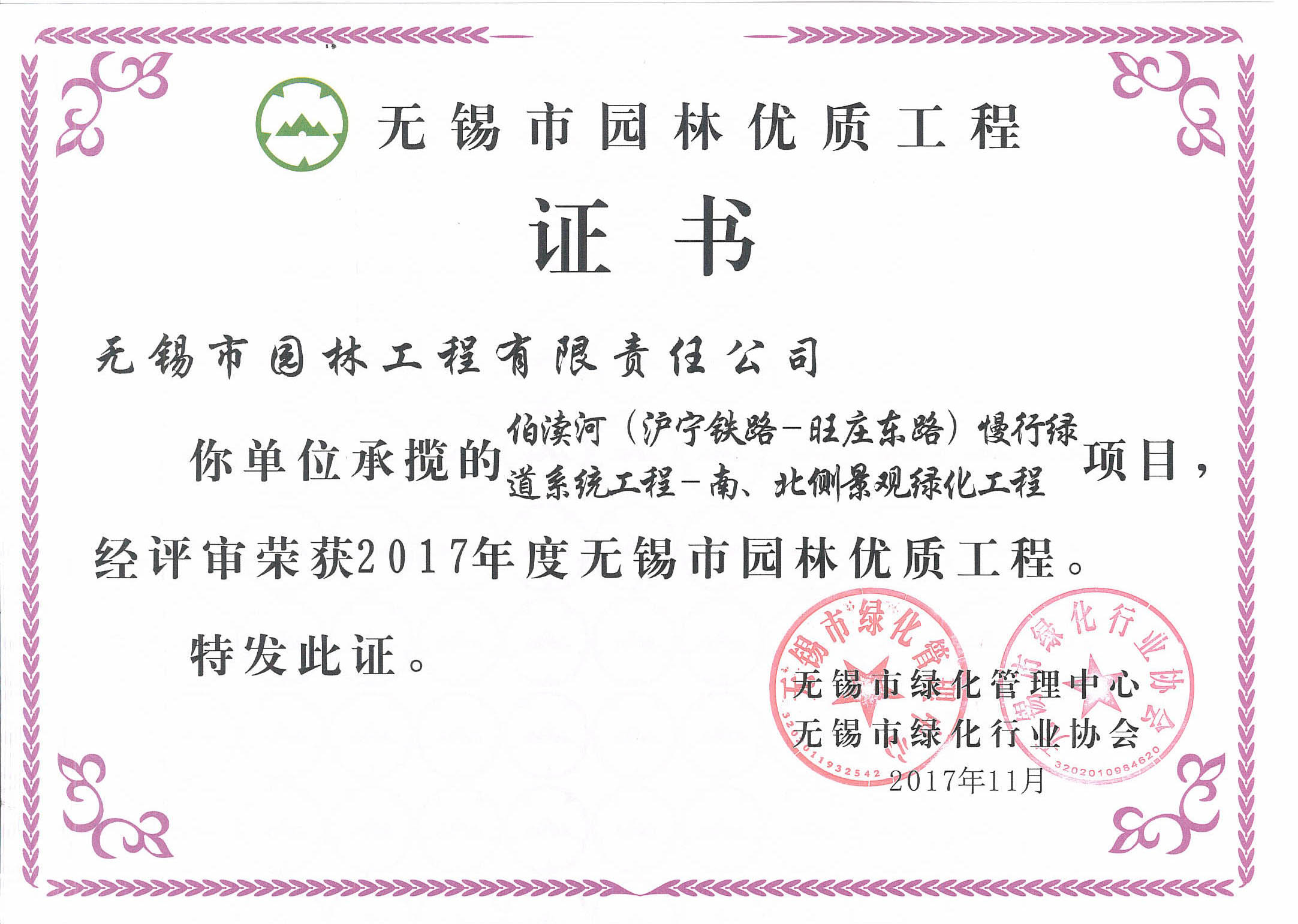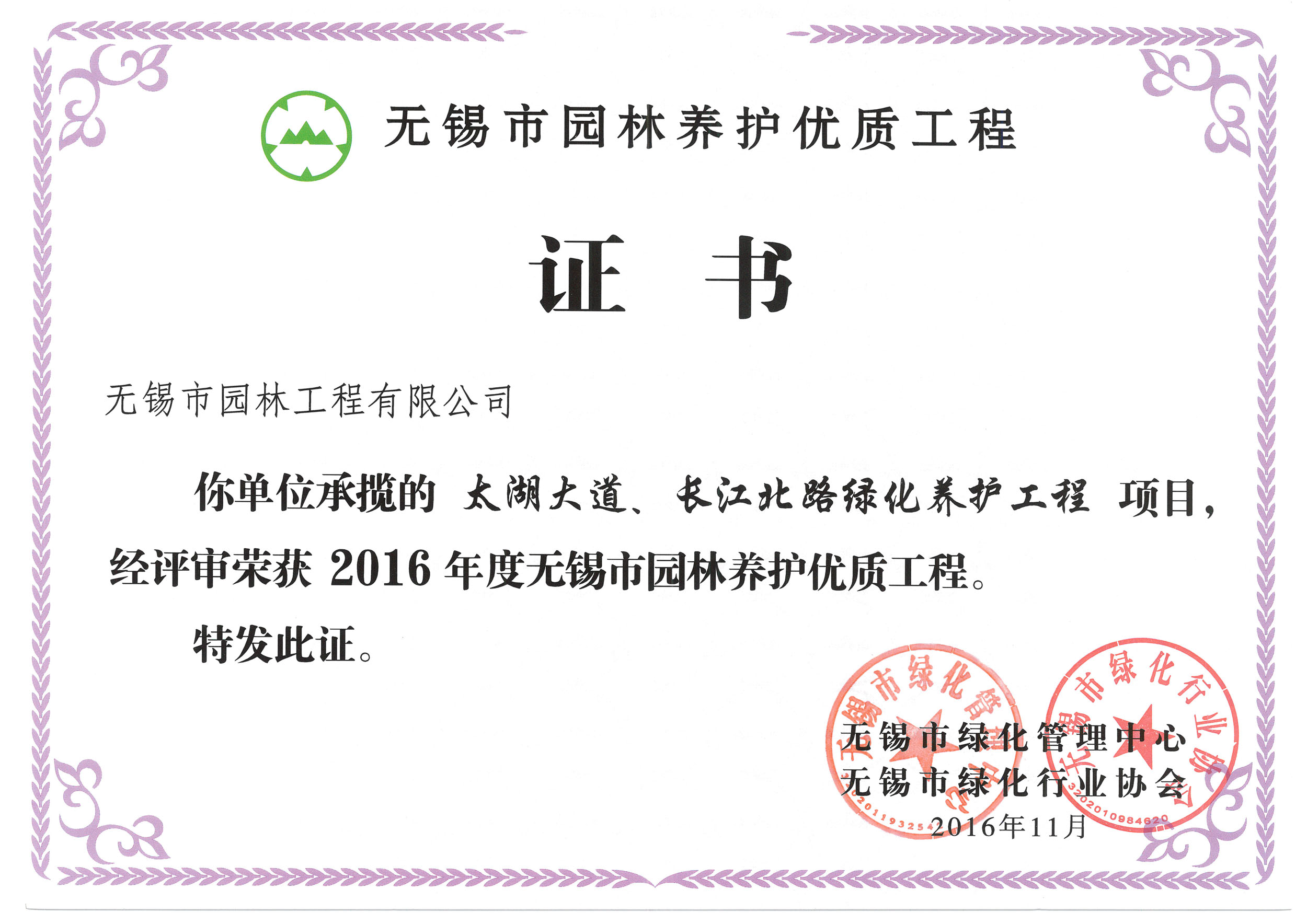 2016揚(yáng)子杯——無錫地鐵1號(hào)線沿線景觀綠化工程三標(biāo)