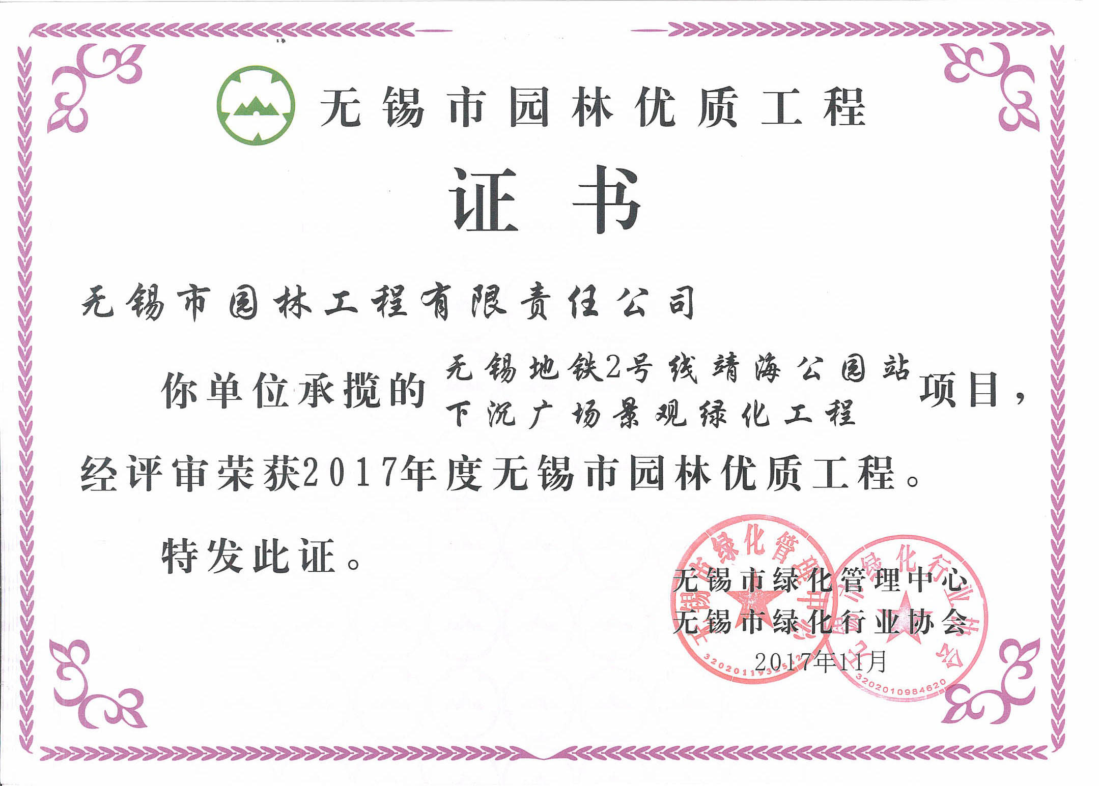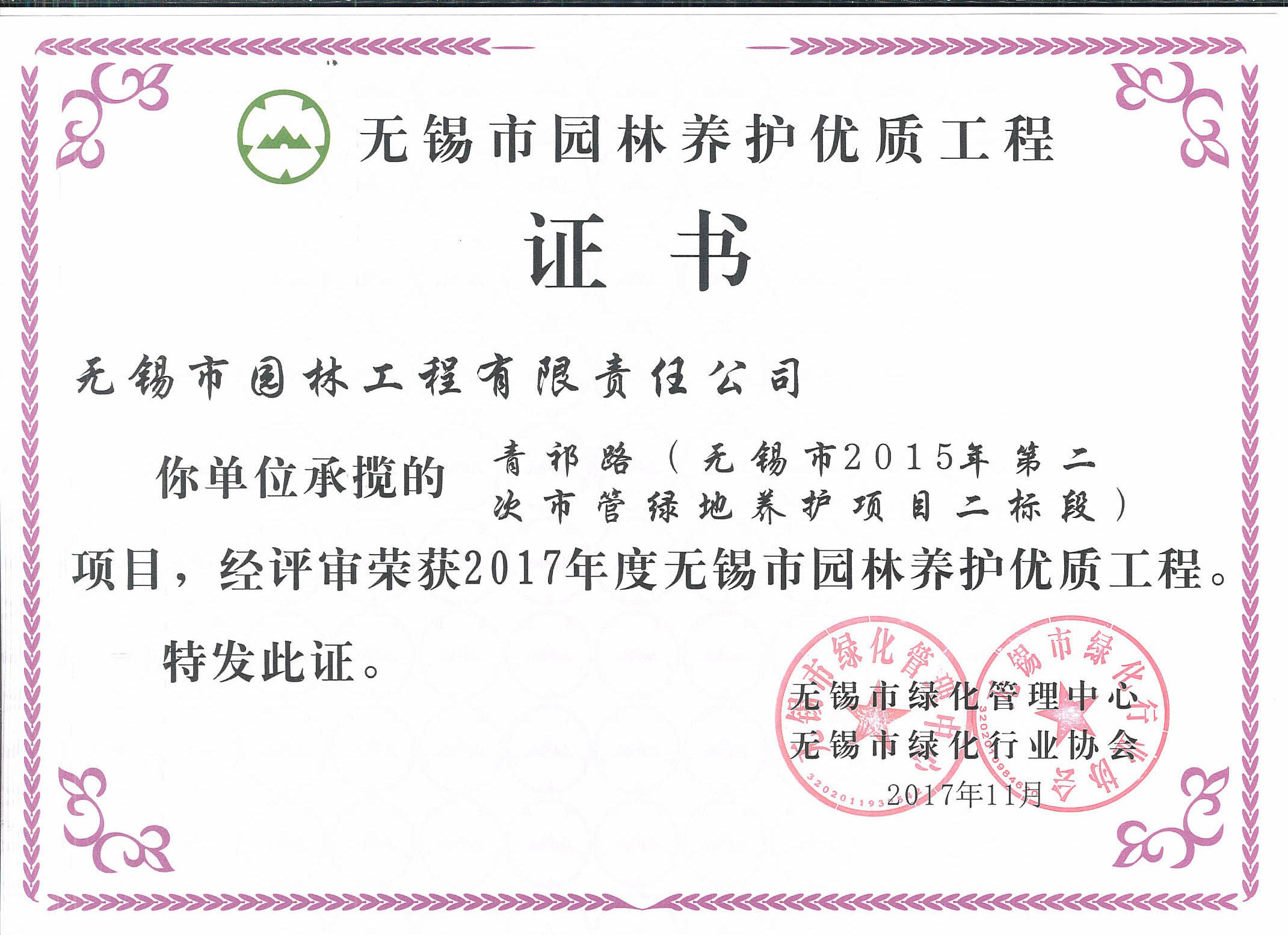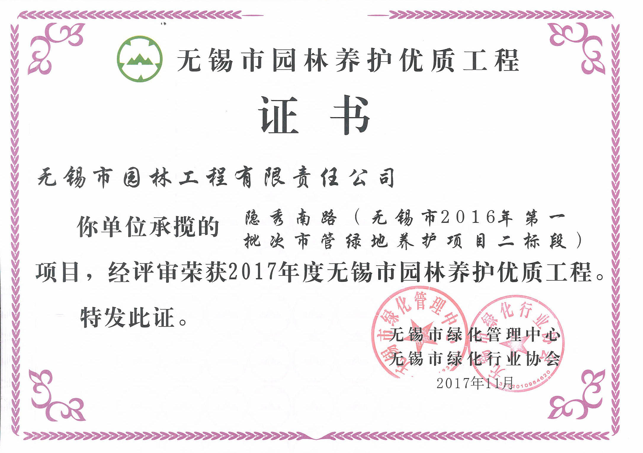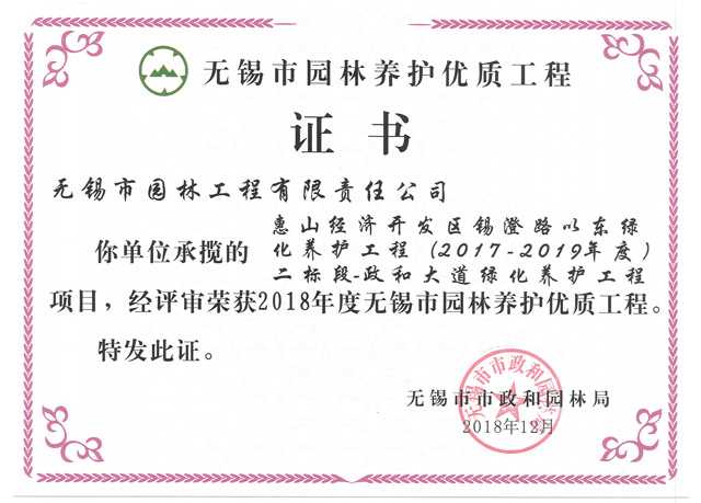 2017-2018無錫市綠化工作先進(jìn)單位