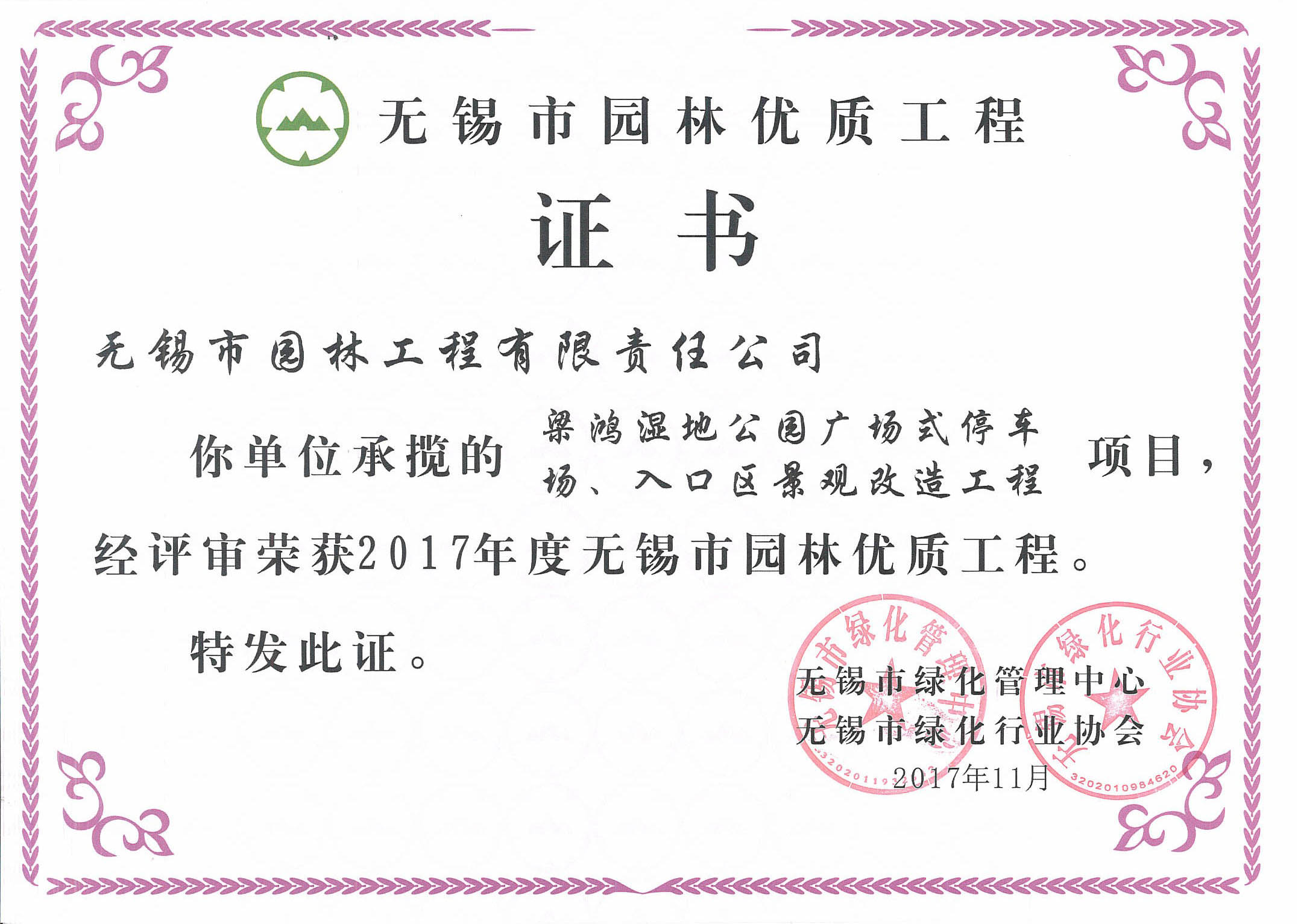 2017年度無錫市太湖杯優(yōu)質(zhì)工程