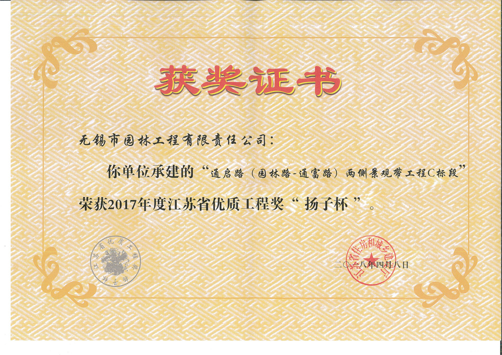 2017“揚(yáng)子杯”—通啟路兩側(cè)景觀帶工程C標(biāo)段